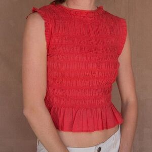 Add a vibrant touch to your wardrobe with this chic red ruffled blouse. Perfect for any occasion, this top offers both style and comfort.