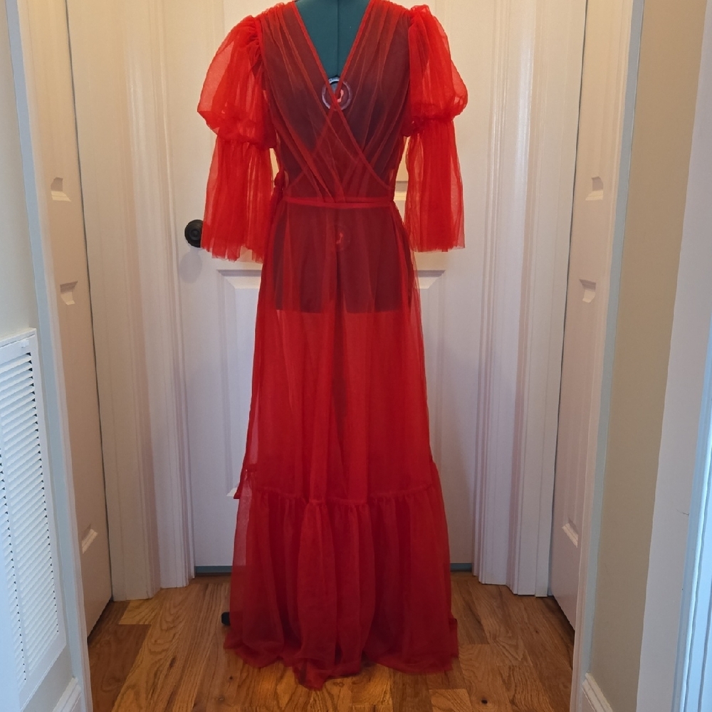 Elevate your loungewear with this chic red sheer robe. Perfect for adding a touch of elegance to your intimate collection.