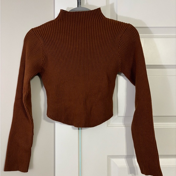 Chic ribbed long sleeve top in a warm brown hue. Ideal for casual outings.