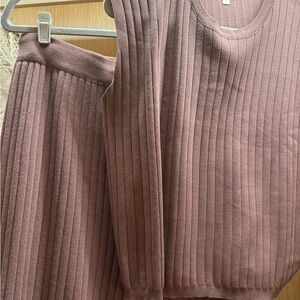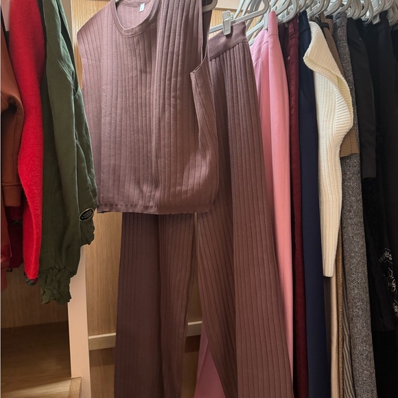 Elevate your wardrobe with these chic ribbed wide leg pants & matching top. Top have a drawstring at the waist, wide legged, top is a wide strapped tank top. Perfect for any occasion, especially for traveling in style.