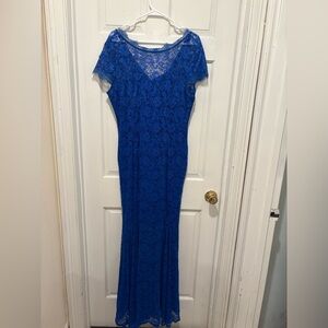 Embrace sophistication with this chic royal blue lace maxi dress. Ideal for elegant occasions.