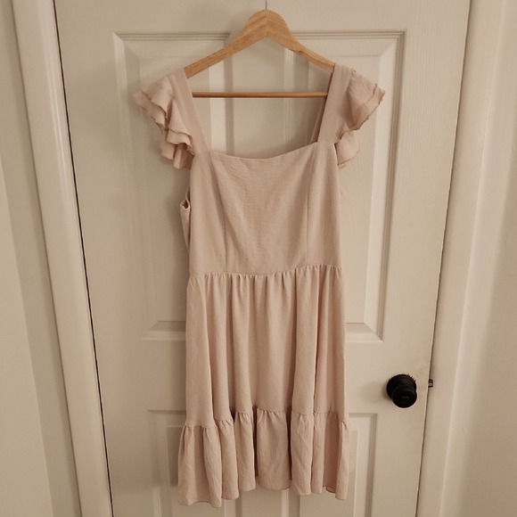 Elegant dress with ruffle sleeves. Perfect for any occasion. Soft and stylish. Worn once.