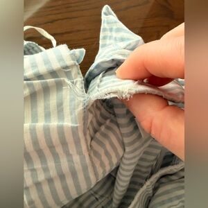 Elevate your style with this chic ruffle striped blouse. Perfect for adding a touch of elegance to any outfit. Small rip shown in last picture. Bundle with any of my other listings & save ☺️