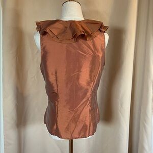 This chic copper blouse features elegant ruffles, adding a touch of sophistication to your wardrobe. Ideal for both casual and formal settings.