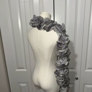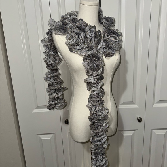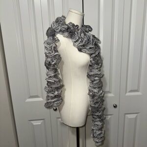 Elevate your style with this chic gray ruffled scarf, perfect for any ensemble.
