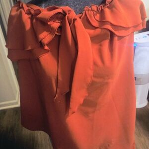 Chic Rusty Orange Ruffled Off-Shoulder Blouse