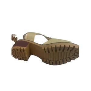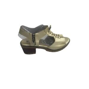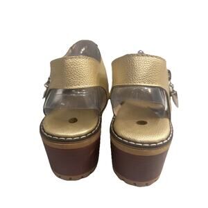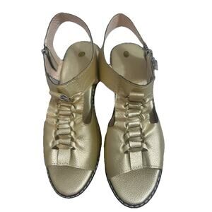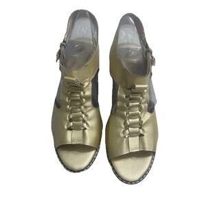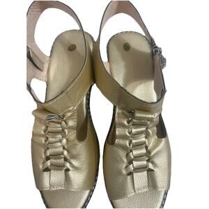 Chic Sandals Gold Chucky Sole Heels Zip Comfy Shoes Sling Back Woman's Sz 8.5