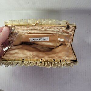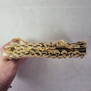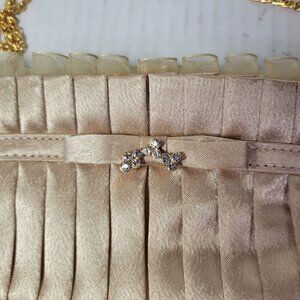 Elevate your style with this chic satin clutch. Featuring a luxurious gold chain, it's perfect for any occasion.