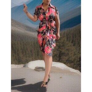 The Chic Sexi High Low Belted Midi Dress by RIVIR exudes a Boho, Cottage Core vibe with its floral pattern and high-low hem. Made from silky polyester fabric, this multicolor dress features short sleeves, a button closure, and a flattering fit and flare silhouette. Ideal for weddings, parties, casual outings, or formal events, this vintage-inspired dress adds a touch of designer charm with its pleated accents and bell sleeves. Perfect for the summer, fall, or spring seasons, this dress is a must-have for women looking for a stylish and unique addition to their wardrobe.