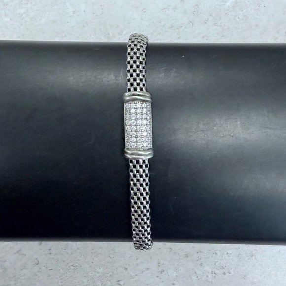 Enhance your style with this chic silver mesh bracelet, featuring dazzling crystal detailing. Perfect for any occasion.
