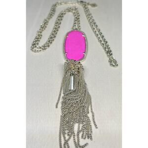 This chic silver necklace features a striking pink pendant, perfect for adding a touch of elegance to any ensemble.
