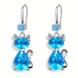 NWT Chic & Elegant Silver-Plated Blue Cat Earrings