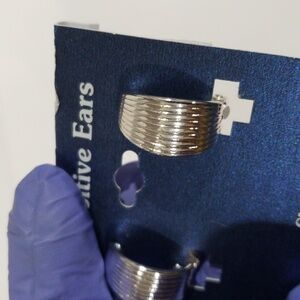 Upgrade your style with these silver-tone textured half-circle clip-on earrings, perfect for non-pierced ears. A chic and elegant accessory for any occasion!
