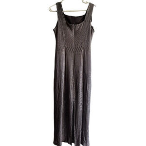 Molly Malloy Evening Chic Sleeveless Maxi Dress in Gray This chic sleeveless maxi dress offers a sophisticated silver sparkle. #75 pd pit to pit 17” waist 15” hip 19” back zipper 14”