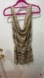 Elegant sleeveless dress with intricate patterns. Features a blend of brown and tan hues.