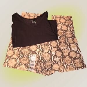 Get this stylish two-piece set for a steal! Perfect for casual outings, lounging, or dressing up with some edgy accessories. The combination of the bold print and the relaxed black top creates a effortlessly cool look.