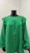 Beautiful green blouse from Chic Soul, size 2XL. Fabric is unlabelled, but likely 100% polyester or a polyester blend—lightweight with little wrinkling. Features a relaxed tunic fit, ruffle accents on shoulders, long puff sleeves with elastic cuffs, and a back keyhole button closure.