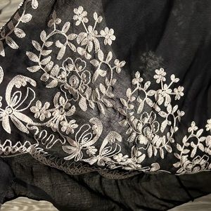 Gorgeous quality. Work once. Black with beautiful floral white stitching. Great over a tank for Summer. Can be worn with anything! One size fits all. Comes a little past the hip. Chic Soul is a plus size website so please keep that in mind.