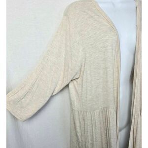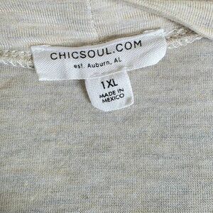 ChicSoul.com plus size cream open-front tiered cardigan in size 1XL. Lightweight flowy knit, 3/4 sleeves, perfect layering piece. Made in Mexico.