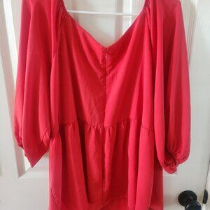 Chic Soul, Red Womens V Neck Babydoll top with buttons Plus Size 1x