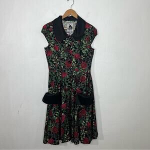 Chic Star Good Goth Rose Print Peter Pan Pocket Dress Size 8 NWT