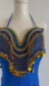 This chic strapless dress features a striking blue color with elegant gold accents, perfect for making a statement at any event.