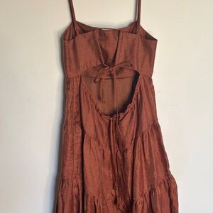 This chic strapless dress in a warm rust hue is perfect for any occasion. Its elegant design offers both style and comfort.
