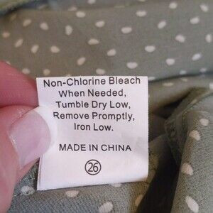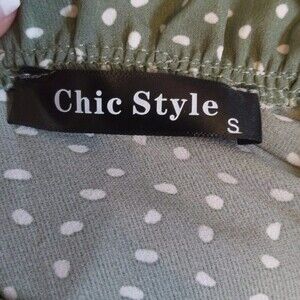 Chic Style sage olive green w/ white dots, knee length flowy dress S