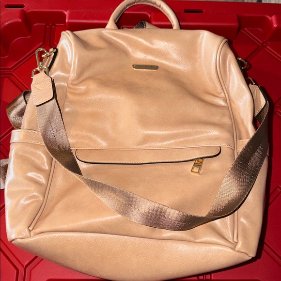This chic tan backpack is a stylish addition to your wardrobe. Its versatile design and neutral color make it perfect for any occasion.