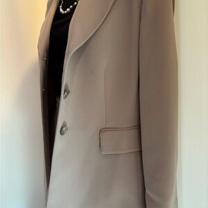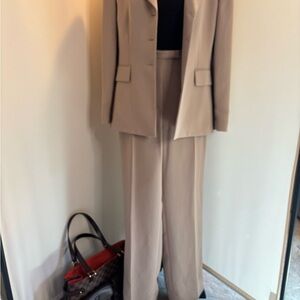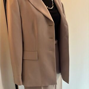 Elegant tan blazer with matching pants. Perfect for professional settings. Stylish and versatile.