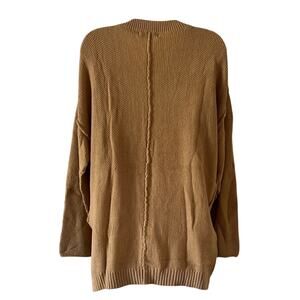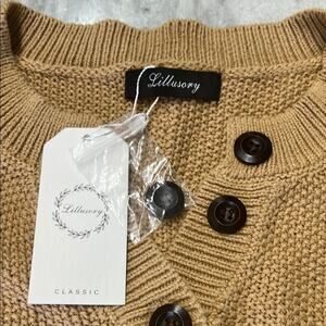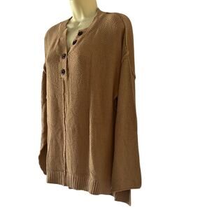 Chic Tan Button-Up Knit Sweater Oversized Woman Small Pullover Casual