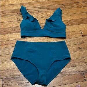 Chic Teal Ruffle Bikini Set