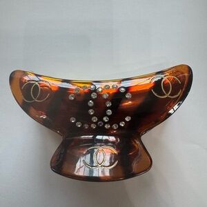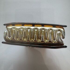 Elevate your style with this chic tortoise shell hair clip. Adorned with sparkling rhinestones, it's perfect for adding a touch of elegance to any outfit.