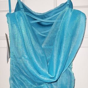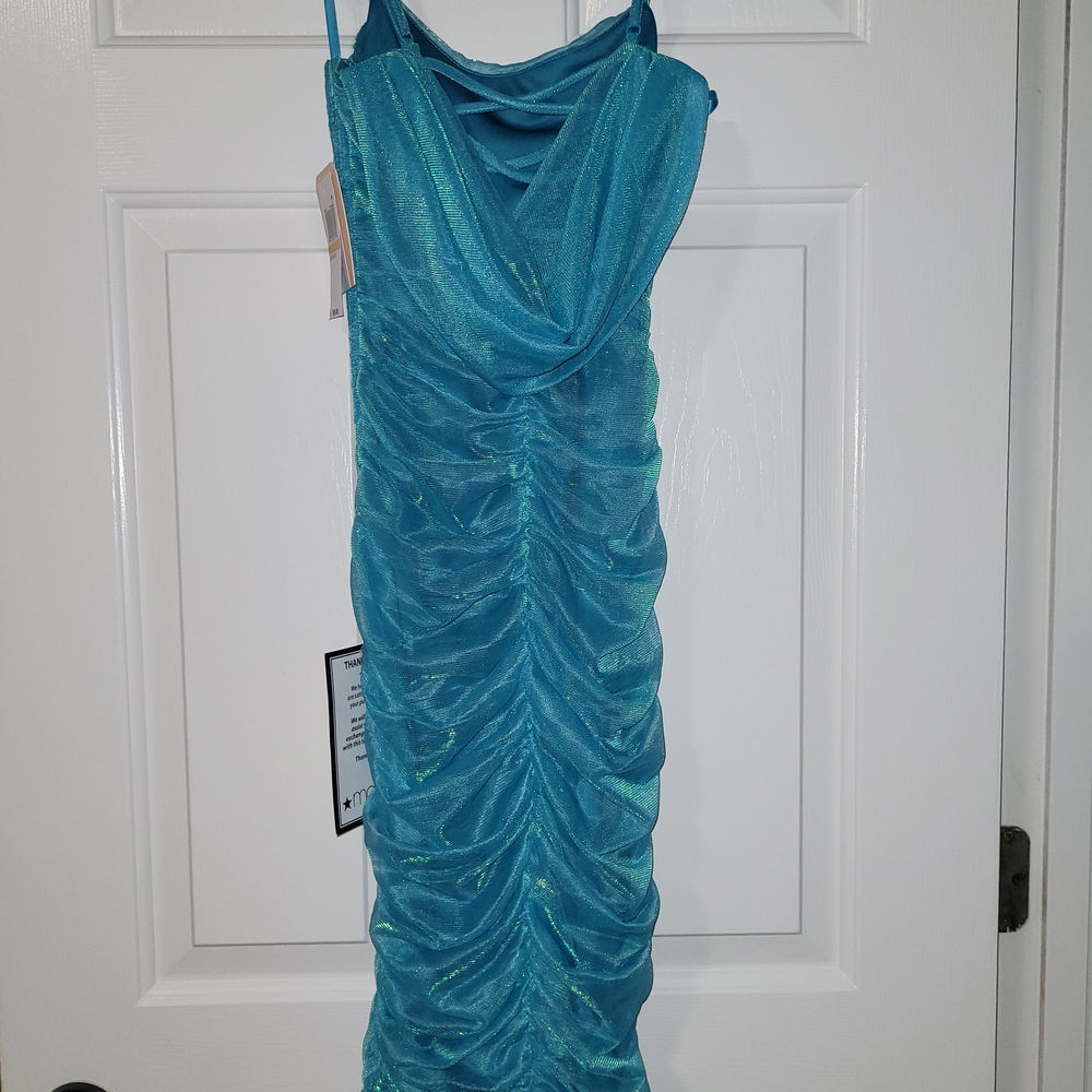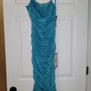 Turn heads with this chic turquoise ruched mini dress. Perfect for any occasion, its vibrant color and stylish design make it a must-have addition to your wardrobe.