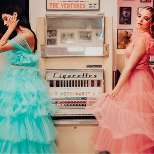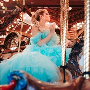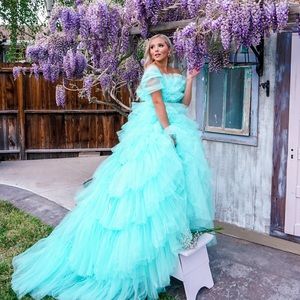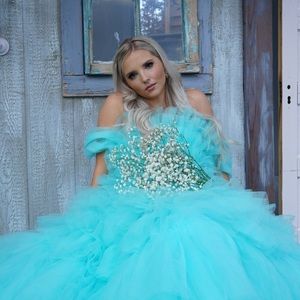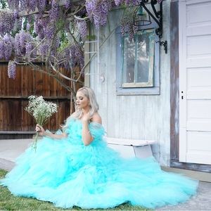 Embrace sophistication with this chic turquoise ruffled maxi dress. Perfect for making a statement at any event.