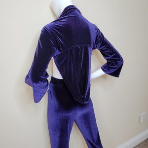 Chic Twist Velvet Purple Hooded Long Sleeve Top w/ Skinny Fit Pants SZ S