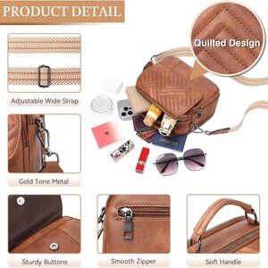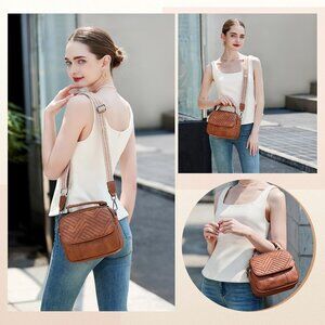 Features: Crafted from high-quality vegan PU leather with a smooth fabric lining, this compact crossbody packs a punch with multiple compartments, including two main zippered pockets, one quick-access flap buckle zipper, and two back zippered pockets. Measuring about 8.9 x 3.7 x 7.3 inches, it’s perfectly sized with a top zipper closure for keeping your essentials secure. The adjustable strap (30-56 inches) doubles as a shoulder or crossbody option, and a top handle gives you versatile carrying styles. Durable stitching and sleek metal hardware make it a stylish yet practical piece.