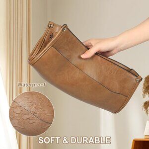 Features: Made from eco-friendly vegan leather that’s water-repellent, scratch-resistant, and perfect for everyday wear. This versatile crossbody measures about 12 x 3.5 x 10 inches and weighs just over 1.3 pounds, making it super lightweight and easy to carry. It has a smart interior with zipped and slip pockets for your phone, cards, and small essentials, plus a hidden anti-theft pocket. The standout feature? A bold colored guitar strap that’s adjustable, letting you switch from shoulder to crossbody with ease. Gold hardware adds a touch of elegance.