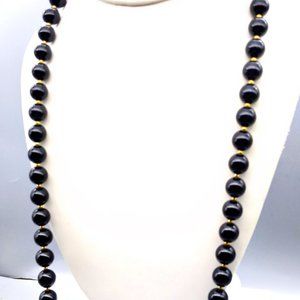 Chic Vintage Black Lucite Beads Necklace with Gold Tone Spacers and Hidden Hand