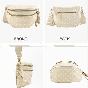Features: This eye-catching bum bag is made from a durable, water-resistant nylon shell with a playful polka dot print. It’s roomy enough for your essentials—wallet, keys, phone, and more—and features multiple zip pockets, including a hidden back pocket for extra security. The wide, adjustable strap makes it super comfortable for all-day wear, whether worn as a waist pack, crossbody, or shoulder bag.