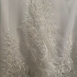 Stylish white dress featuring elegant lace embroidery and sheer sleeves. Ideal for special events.