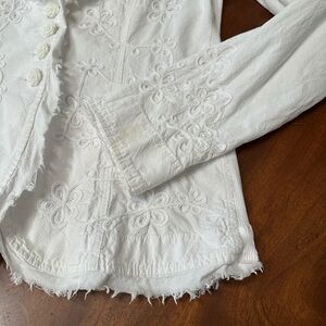 Stylish white jacket with detailed embroidery. Ideal for special events. Rose buttons, frayed hems! perfect for concerts! Wedding! Date night! Girls night! See photos for details