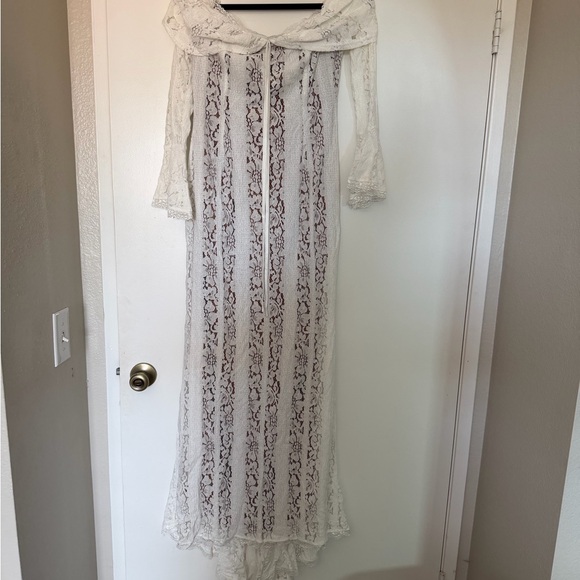 Step into elegance with this chic white lace maxi dress. Perfect for any occasion, its delicate lace design offers a timeless look.