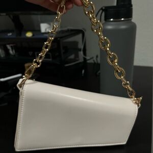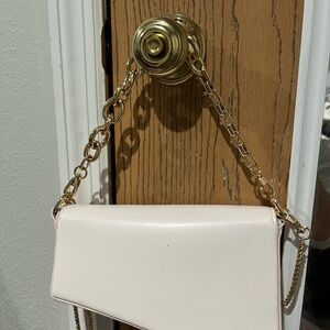 Chic White/ Light Pink Shoulder/Crossbody Bag with Gold Chain Strap