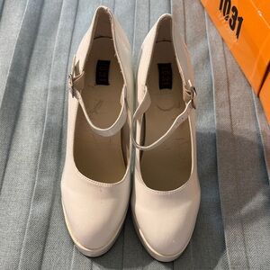 Elevate your look with these chic white platform heels. Perfect for adding a touch of elegance to any outfit.