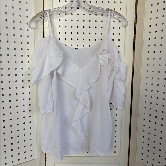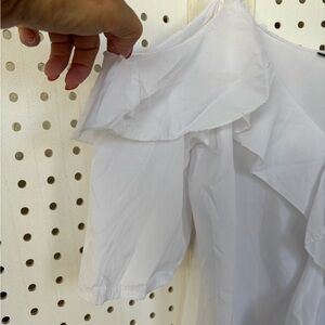 Elevate your style with this chic white ruffle blouse. Perfect for any occasion, it adds a touch of elegance to your wardrobe.