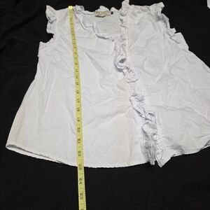 Discover timeless elegance with this chic white blouse, featuring delicate ruffle accents. A versatile addition to any wardrobe.