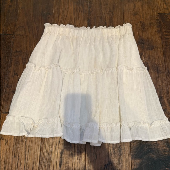 This chic white ruffle mini skirt adds a touch of elegance to your outfit. Perfect for any occasion, its soft fabric ensures comfort and style.