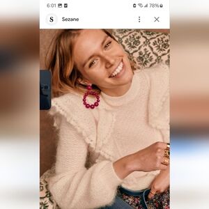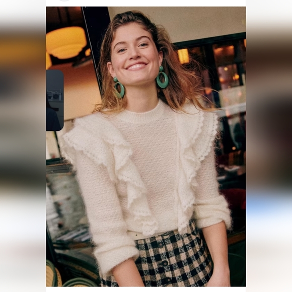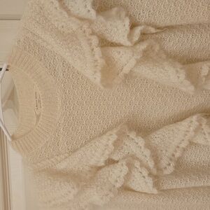 Elegant white sweater with ruffled details. Perfect for a stylish look.40% Polyamide, 32% Kid Mohair, 28% Merino Wool