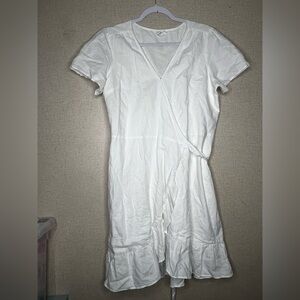 Discover elegance with this chic white wrap mini dress, perfect for any occasion. Its stylish design offers a flattering fit.